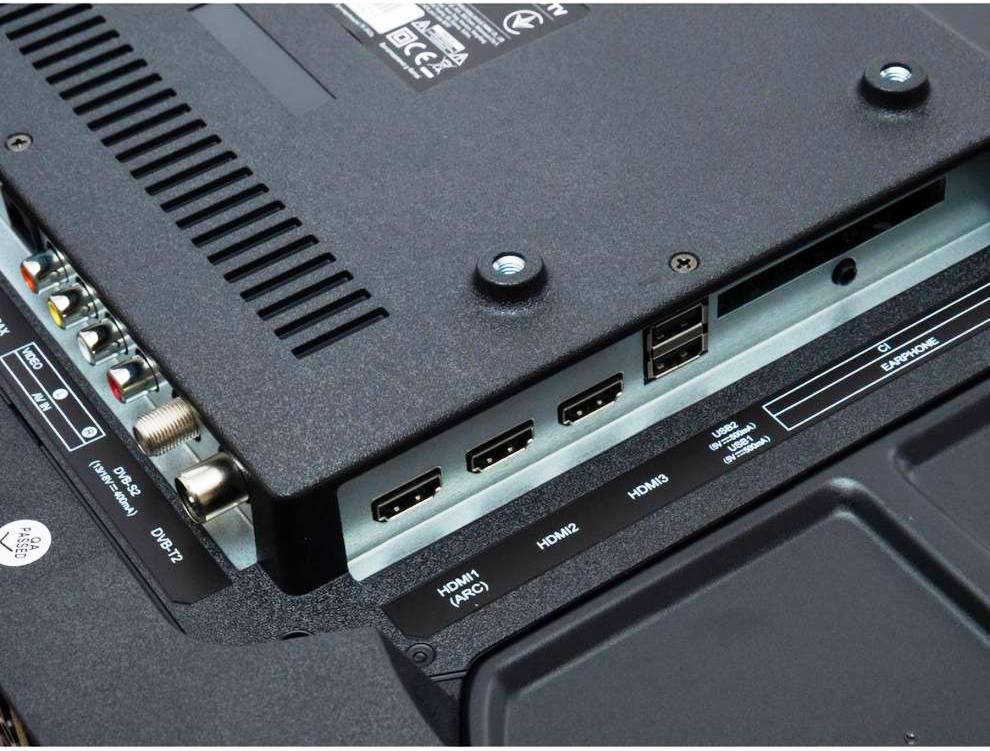 На комунікаційної панелі знаходяться такі сучасні інтерфейси як USB, HDMI, антенний вхід (RF), аудіовихід для навушників та інші.