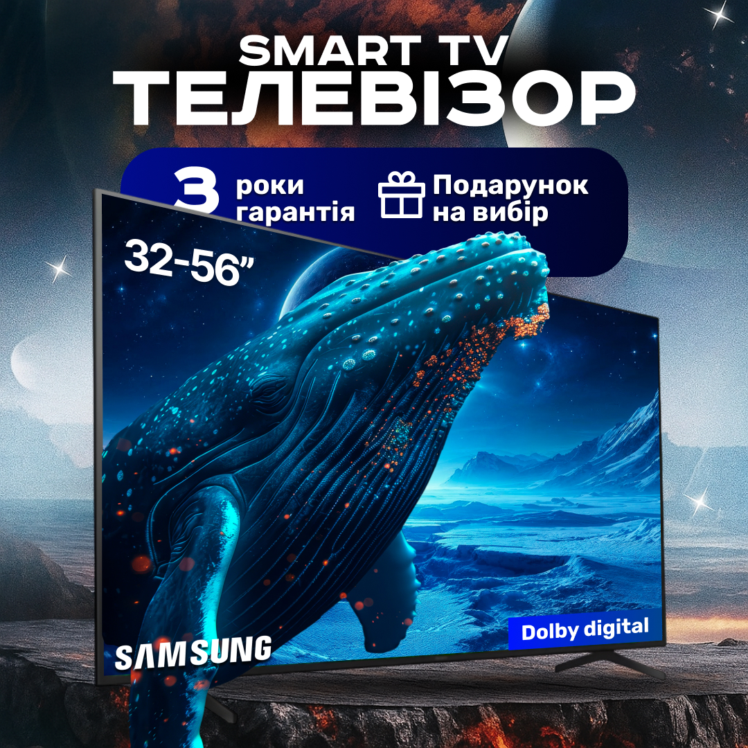 - Телевізор Samsung Smart TV 32" 34", 42", 45",55", 56"(на Ваш вибір)- 1 шт;